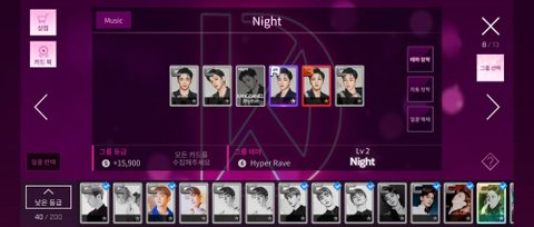 한 앨범에는 한 멤버당 카드 하나씩만 넣을 수 있는데 한 테마로 맞출수록 그룹 테마 레벨이 올라가서 아까 말한 레이브 보상을 더 얻게 돼