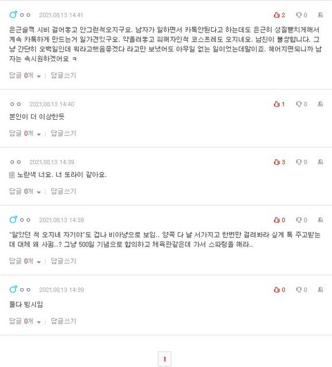 남자도 너무 오바떠는디? 갑자기 급발진. 다 여자 욕만하네. 난 저 글에서 여자가 다 참고 지낸거 같다는 생각이 드는데