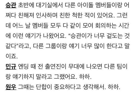 겉..? 예? 겉돌아요? 승관이가요? (긁적)