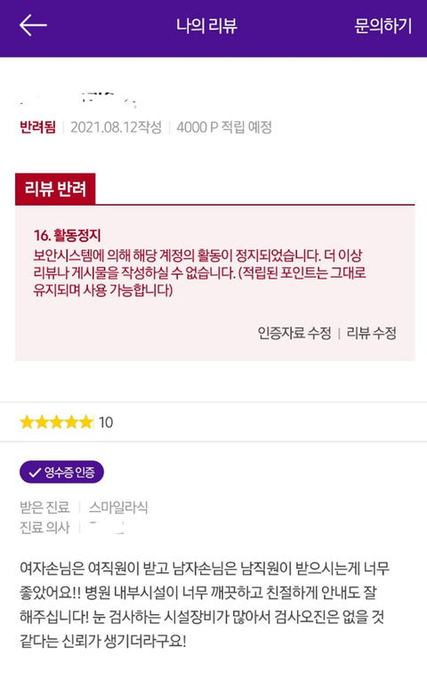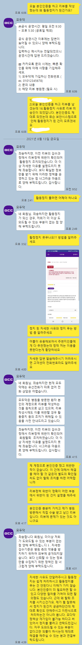 그냥 리뷰 이렇게만 남겼거든?? 근데 리뷰정책을 위반했대서 뭘 위반했냐니까 안알려줌