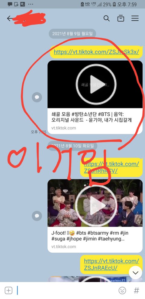 여러분 제가 틱톡에서 방탄이들 짤같은거 이쁜거 있으면 카톡에다가 나한테 보내놓거든요?
