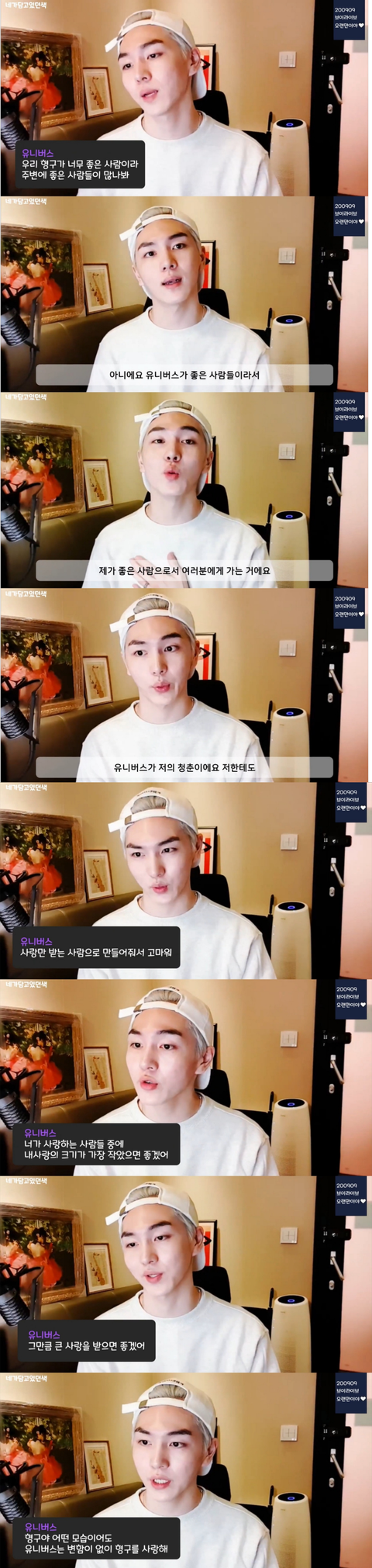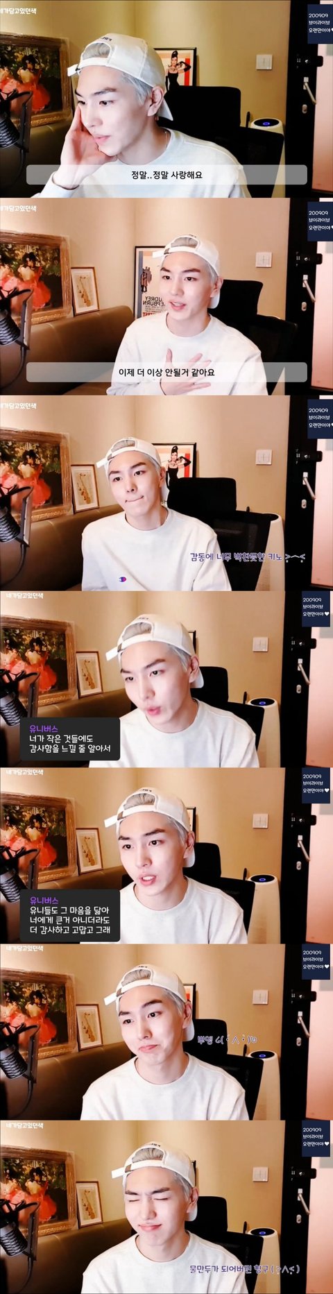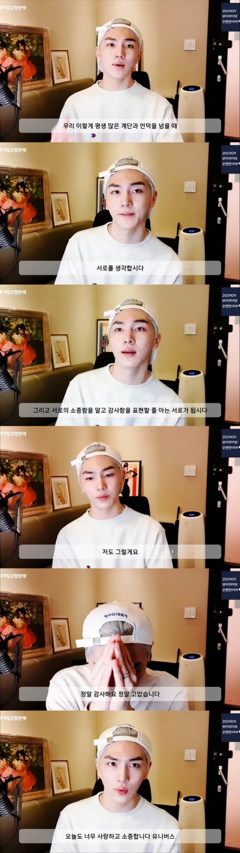 이제 브이앱 댓글을 읽는데 여기도 감동적인말 대잔치임