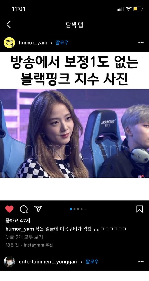 현재 인방 보정도 없는 블랙핑크 지수 사진