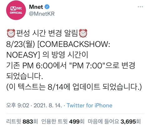 우리 컴백쇼 시간 변경됐다!!