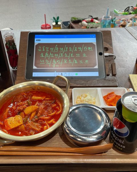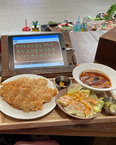 ㅁㅊ 조이 사진 완전 존예다.. 근데 놀토 음식 되게 정성스럽게 주네ㅋㅋㅋ 반찬이랑 음료도 같이 주는구나