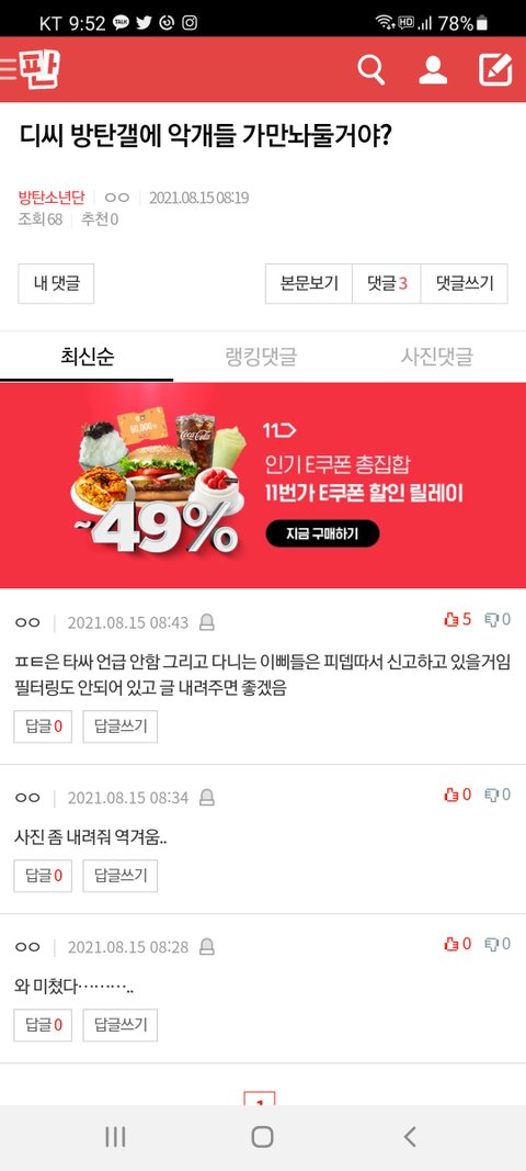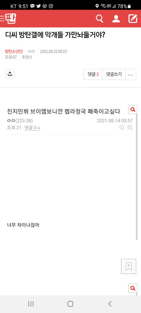 ⚠️밑 디씨 방탄갤에 악개글 여기서봐 +댓‼️