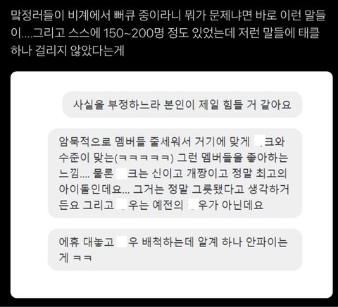 ㅁㅈ러 스페이스에서 나온 말이래.. 별 궁예 다하고 진짜 이건 좀 너무 간거 아니냐..? 그 계정 유사계도 아니고 걍 순덕 넴드계였음