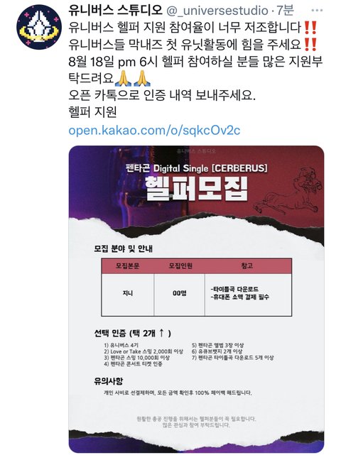 하는거고 여섯시부터 보통 한시간하니까 진짜 부담없거든!!! 그리고 더 한다하더라도 자기 시간 안되면 될 때만 하고 빠져도 괜찮고’ㅜ ㅠㅠㅠㅠㅠ참여율 저조하대 도와줘라ㅠㅠㅠ