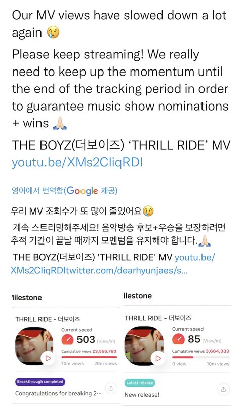 뮤비 스밍도 할 수 있는 사람은 좀 부탁해 지금 뮤비 추이 안 좋대
