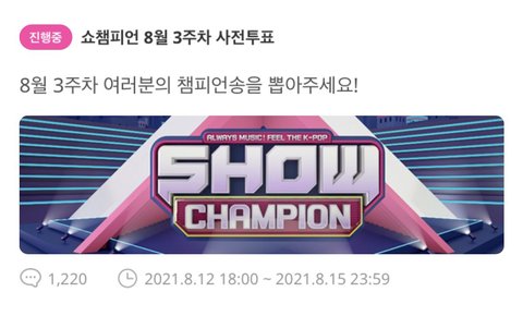제발 쇼챔 투표 안한애들은 좀 해주라.. 다들 나한명쯤은 하다가 투표 뒤집히고 그러는거야 지금 역전됐어.. 계속 잘하다가 ㅇㅞ잃ㅇㅐ..
