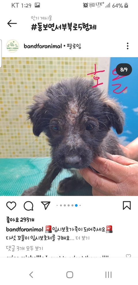 처음 발견되었을때 어미없이 형제5마리만 발견되었어요