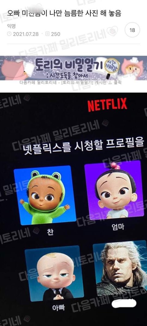 아니 오빠새끼 왜 나만 넷플 이딴걸로 해놈?