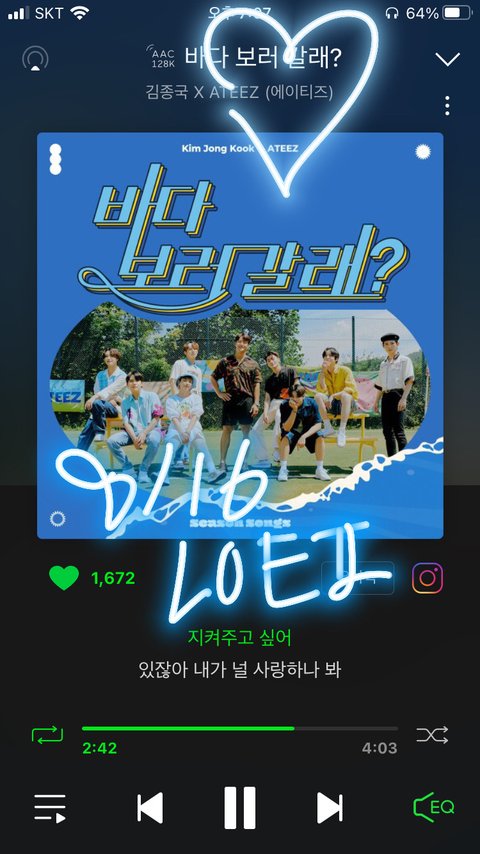 김종국님이랑 콜라보 신곡 나왔단 소식 듣고 찾아왔어! 노래 진짜 좋더라❤️ 휴가도 못갔는데 바다 보러 갈래? 로 간접여행 다녀온 기분이야 ㅎㅎ