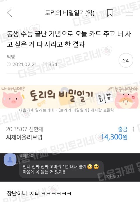 도영이가 카드줬는데 정우 커피만 사먹은거