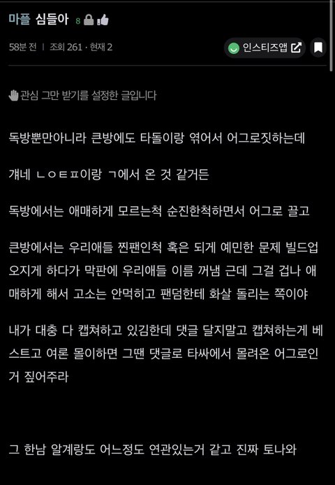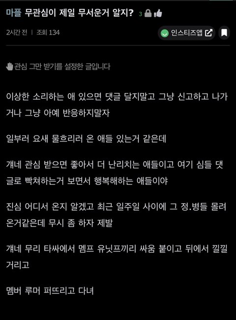 암튼 요즘 커뮤마다 갤련들 몰려오는거 같으니까 우리도 제발 먹금좀 잘하면 안될까 들어가지도 말고 동조도 하지말고