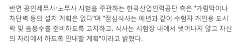 특히 노무사 세무사 시험의 경우, 점심시간도 포함이 되어 있는데 도시락을 가지고 와 취식하는 부분에 있어 제대로 된 방역 대책이 하나도 없다고 합니다. 아래는 시험 주관처 산업인력공단의 답변입니다.
