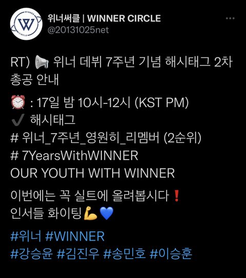 위너 데뷔 7주년 축하해 +해시태그 추가