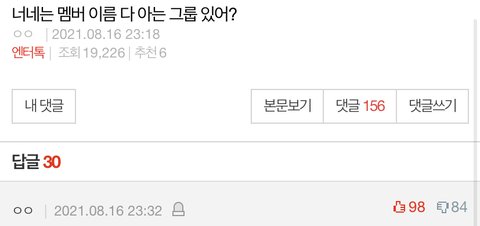 울애들 언급된 댓글에 반대수 봐. 판까흥은 과학이니까 이번 컴백 ㅈㄴ 기대한다. 꺅 ♡