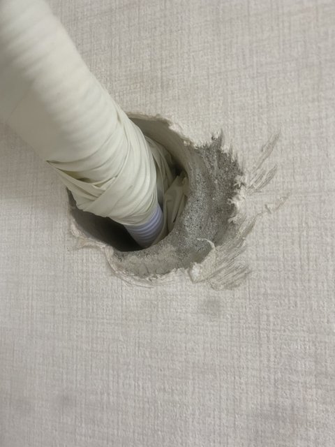 실리콘 마감 해주시겠다고 하셧지만 타공한 구멍 말고 옆쪽 벽 손상이 있고 구멍자체가 일자가 아니라 비스듬하게 사선으로트 타공되어 있었구요..