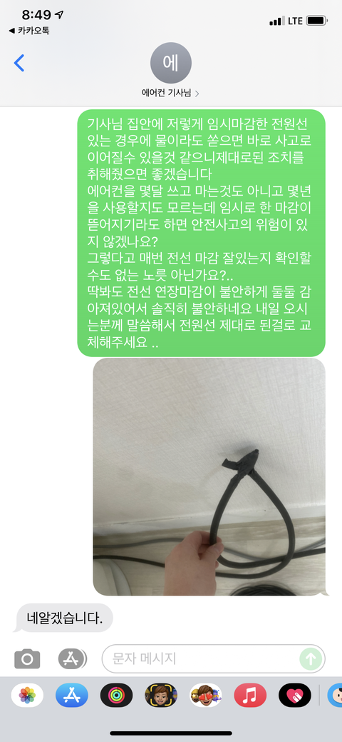 문자 보낸 이후 자기전에 에어컨 겉표면에 물고인걸 확인해서 그건 다음날 말해야 겠다 하고 잠들었습니다