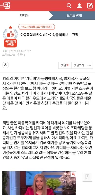 아니지? 이거 누가 카디비한테 번역해서 보냈다고 인증까지 했는데 ㅋㅋ..설마