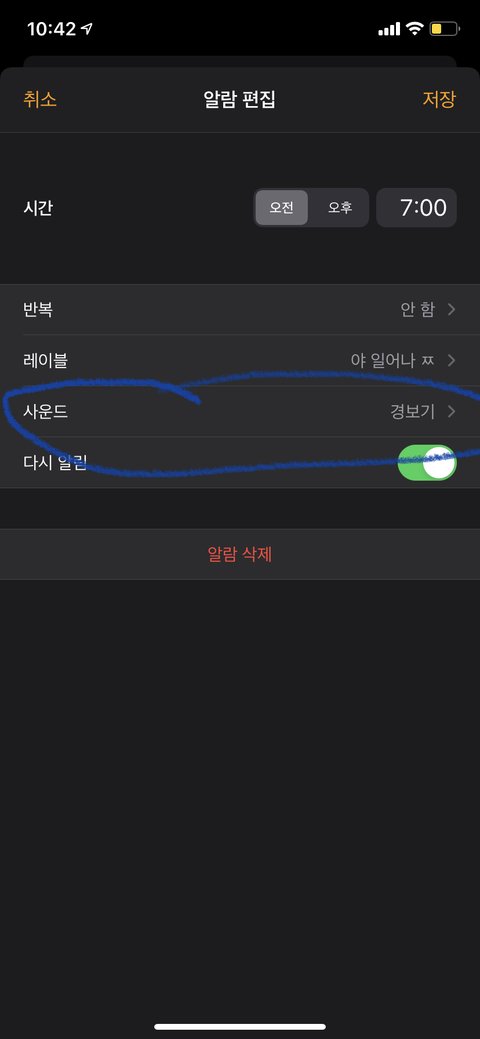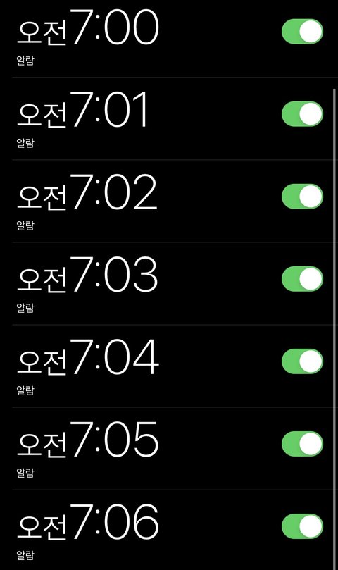 알람 잘 못 듣는 애들 주기적으로 알람 소리 바꿔야댐 암만 시끄러워도 나중엔 ㅅㅂ 익숙해져서 안 일어남 ㅋㅋㅋㅋㅋㅋㅋㅋ 난 알람 어플 따로 깔아서 해둠... 미션 깨야지 꺼지는 거