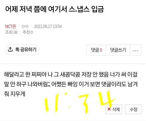 어제 저녁 쯤에 여기서 스.냅스 입금