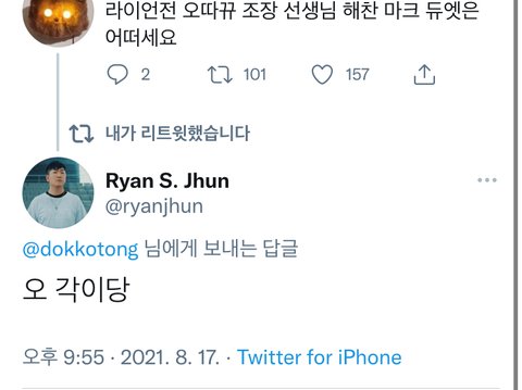 해달라는 글에 오 각이당 이런 거 봤냐? ㅅㅂ 진짜 듀엣 나올 수도 있을듯 하 드디어 내 소원이 이뤄지나