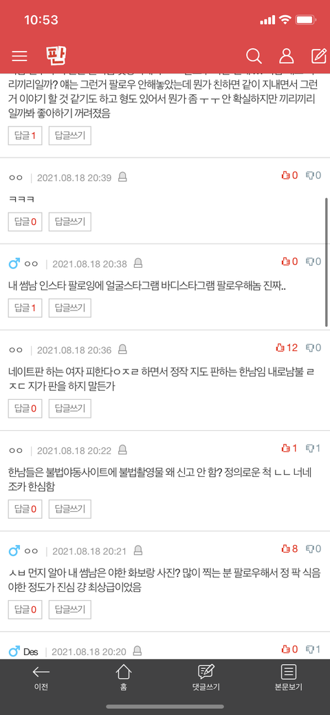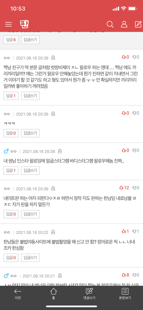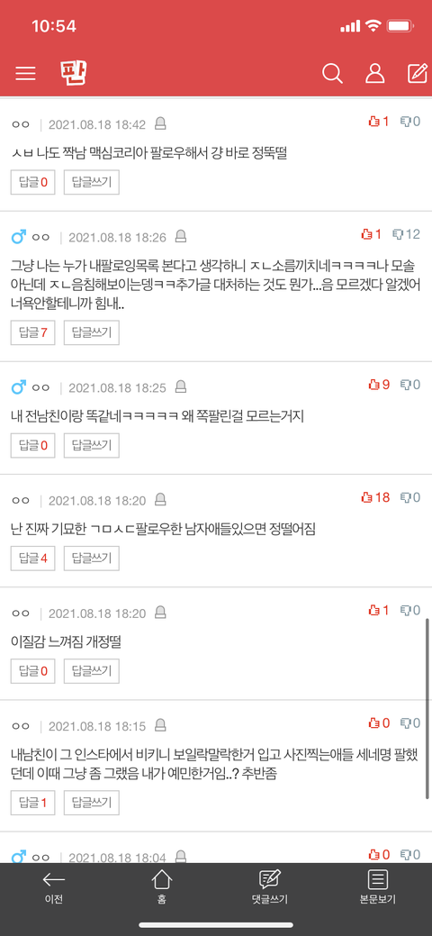 그리고 몇몇 댓쓰니들 말마따나 그런 분들 팔로잉 한 거나 그런 분들을 보는 거 자체가 정 떨어진더는 게 아니라.. 내 썸남이 공계로 대놓고 팔로우 했다는 게 정떨이라는 거야.. 그냥 다른 남자들이라면 뭘 하든 관심도 없지.. 솔직히 본인 썸남이나 남친이 그랬다고 생각해바.. 진짜 개존예 연예인이나 인스타스타 팔로우 한 거면 ㄹㅇ 아무 생각도 없는데, 노출 사진 올리는 분들 팔로우 한 거는 나한테 타격이 너무 크다..