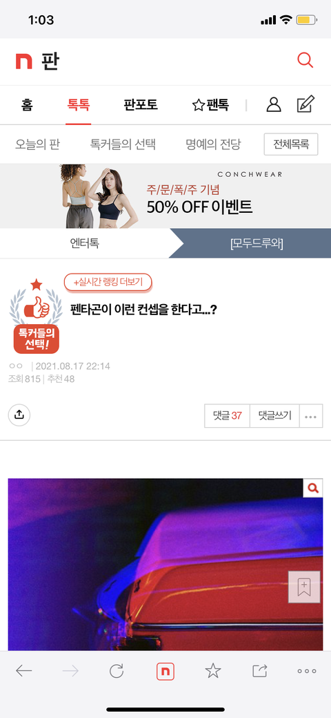 톡선 첫페이지 진입