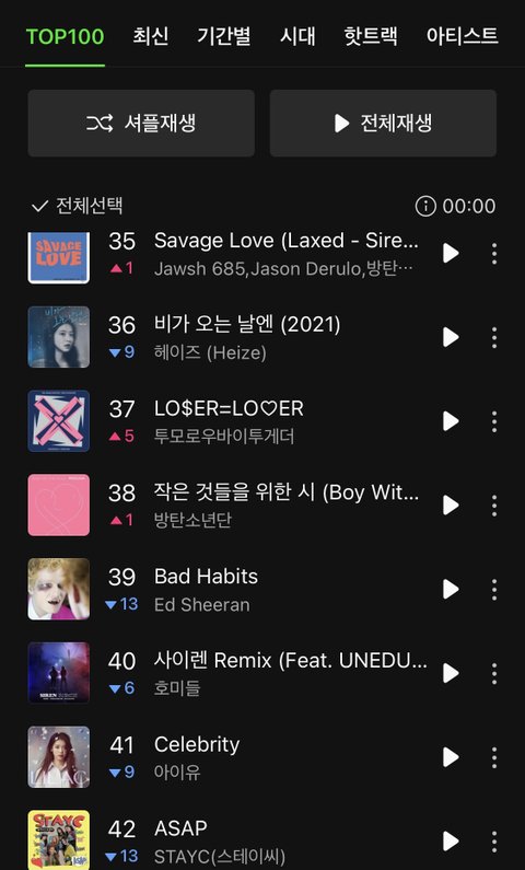 생각보다 성적 엄청 좋아 음반은 원래도 좋았고 음원도 나 모아인데 내 생각보다도 좋음 우리 이렇게 탑100에 머무는건 역대급임 항상 실시간에만 머물었는데 전곡 차트인도 했다