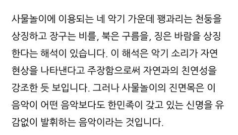 사물놀이가 천둥 바람 구름 비 상징하는 악기있다니까