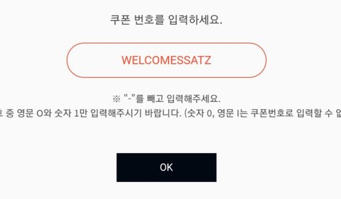 앱 들어가서 사진에 보이는 저거 누르고 코드 입력하라고 하면 WELCOMESSATZ 요거 입력하면 보상 줘!!