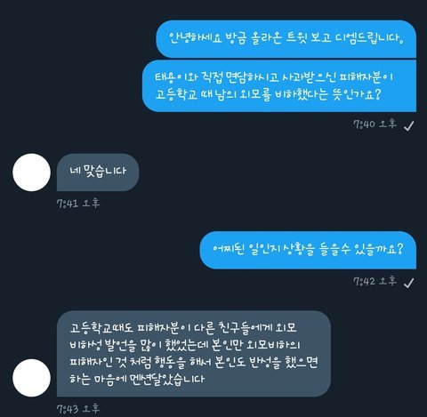 제보자가 댓글녀와 주고받은 카톡 다 폭로하고 자폭한 희대의 전국민상대 막장드라마 사건의 피해자는 태용이 맞는듯