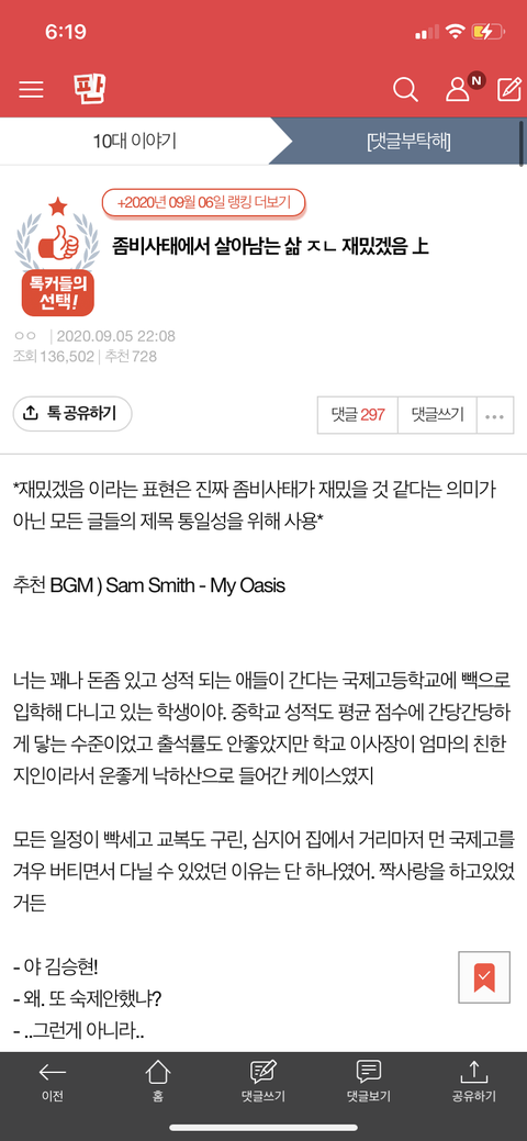 ㄹㅇ 홍보 그딴거 아니고 책갈피함 정리하다가 발견 했는데 어떤 판녀가 10대판에 쓴거거든? 근데 나 포타도 끝까지 잘 안 읽는데 이 좀비 시리즈ㄹㅇ 레전드임 쇼리반 급으로 여운남아... 글 ㅈㄴ 잘쓰고 다른 시리즈도 있는데 ㅈㄴ 쟈밌음 ㅠㅠㅠㅠ 제발 꼭 봐라 ㅠㅠㅠ 난 반장파ㅜㅜ