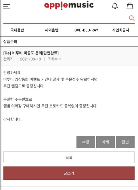 앺뮤만 앨범 4장 구매시 중복 없이 주는건지 자세한 공지가 없어서