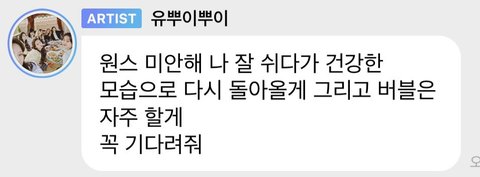 정연 푹쉬고 다시 건강하게 활동했으면 좋겠다