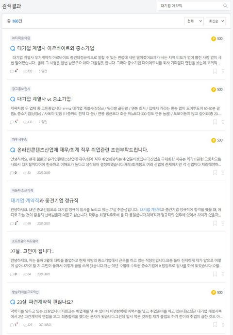 https://www.jobkorea.co.kr/User/Qstn/TalkSearchWindow?Keyword=%EB%8C%80%EA%B8%B0%EC%97%85%20%EA%B3%84%EC%95%BD%EC%A7%81&OrderType=0&W_TypeCode=0