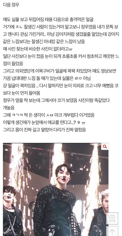 정우 실물 후기 끌어모아봄ㅋㅌㅋㅋㅋ