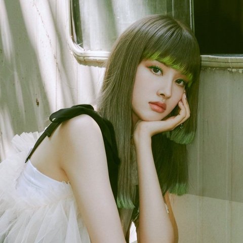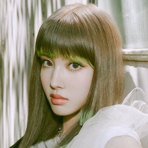 블럭컷에 끝부분 초록 초크 + 눈에 초록 섀도우