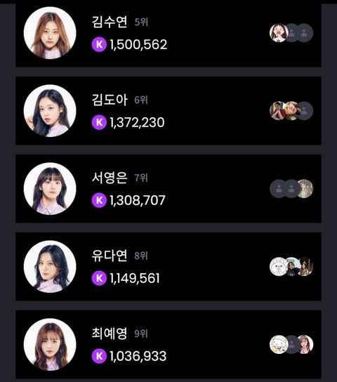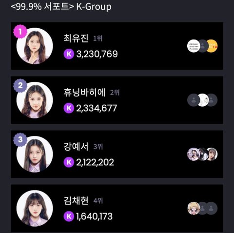 ++ 걸스플래닛 999 K 그룹 유니버스 서포트 순위 TOP 9