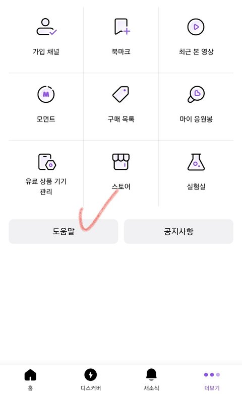 브이앱 어플 : 브이앱 켜서 -> 오른쪽 하단 점3개 -> 도움말 누르면 나와