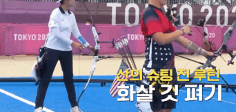 안산 선수는 화살 깃 펴기