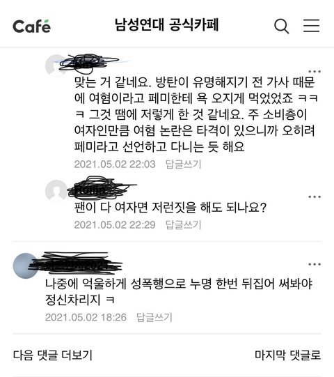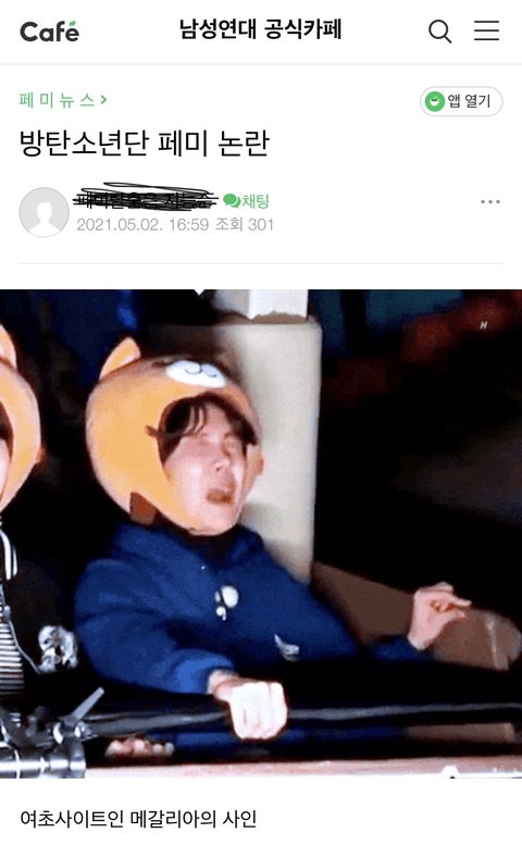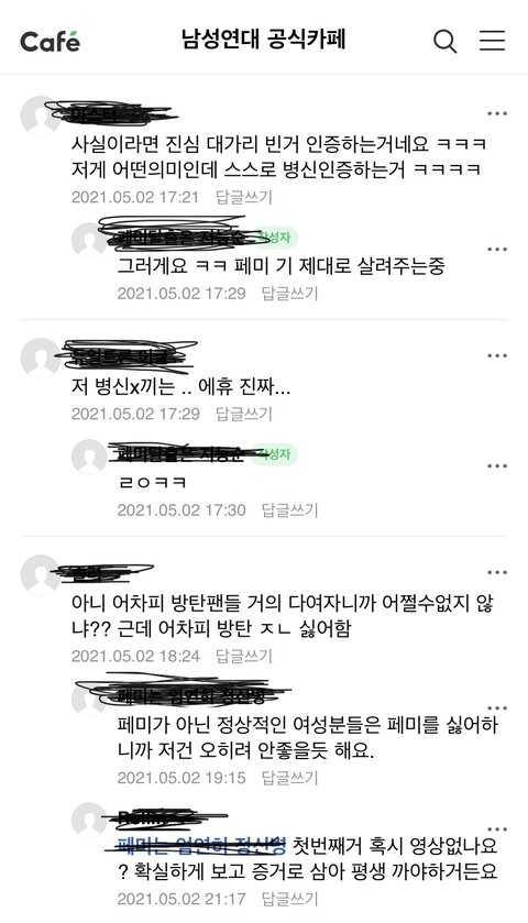 방탄소년단이 페미라서 욕한다는 남성연대카페
