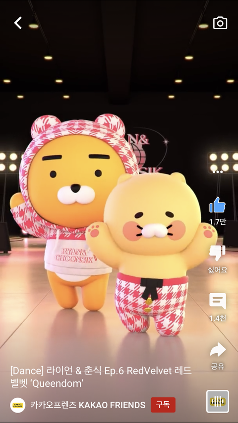 근데 라이언은 왜 그럼 ㅋㅋㅋㅋ? 춘식이는 노래 맞춰서 빵긋빵긋 웃었다가 눈도 치켜떴다가 하는데 라이언은 시종일관 무표정임 아이돌 하기 싫으면 때려쳐 성의 없어 보여