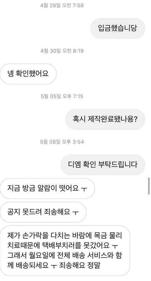 *결론:4월말에 시켰는데 이런저런 이유로 8월말까지 받지도 못하고 중간중간 잠수 오지게 탐
