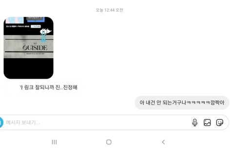아니 링크 첨 해봐서 내가 누르면 안 되는걸 몰랐단 말이야?...글서 초큼 어이없어하면서 링크해서 한 번 더 올렸는데 친구한테 저렇게 옴..ㅜㅜㅋㅋㅋㅋㅋㅋ아 그건 그렇고 너무 좋다 노래들