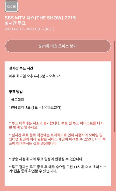 생방송투표에만 1표당100개인데 5번할수있으니깐 일단 1000개!