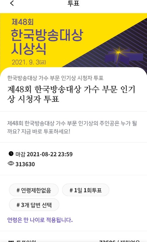 한국!방송대상 투표있어 픽!클 앱 깔고하면 됨 노 광고 1일 1회 간단함 22일 마감이니 오늘부터 투표 3번만 하면 됨 몰랐거나 안한 이삐 ㄱㄱ♥