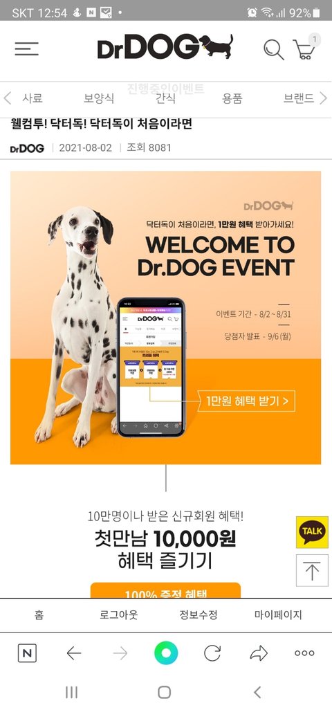 얼마 전 유기견 센터에서 임보로 모셔온 우리 개님을 위해 좋은사료 먹이려고 쇼핑하다가 사료샘플도 무료로 주는곳이 있어서 바로 가입하고 신청했네요잘 먹으면 만원도 받았으니 하나 사봐야겠어요 ㅎ